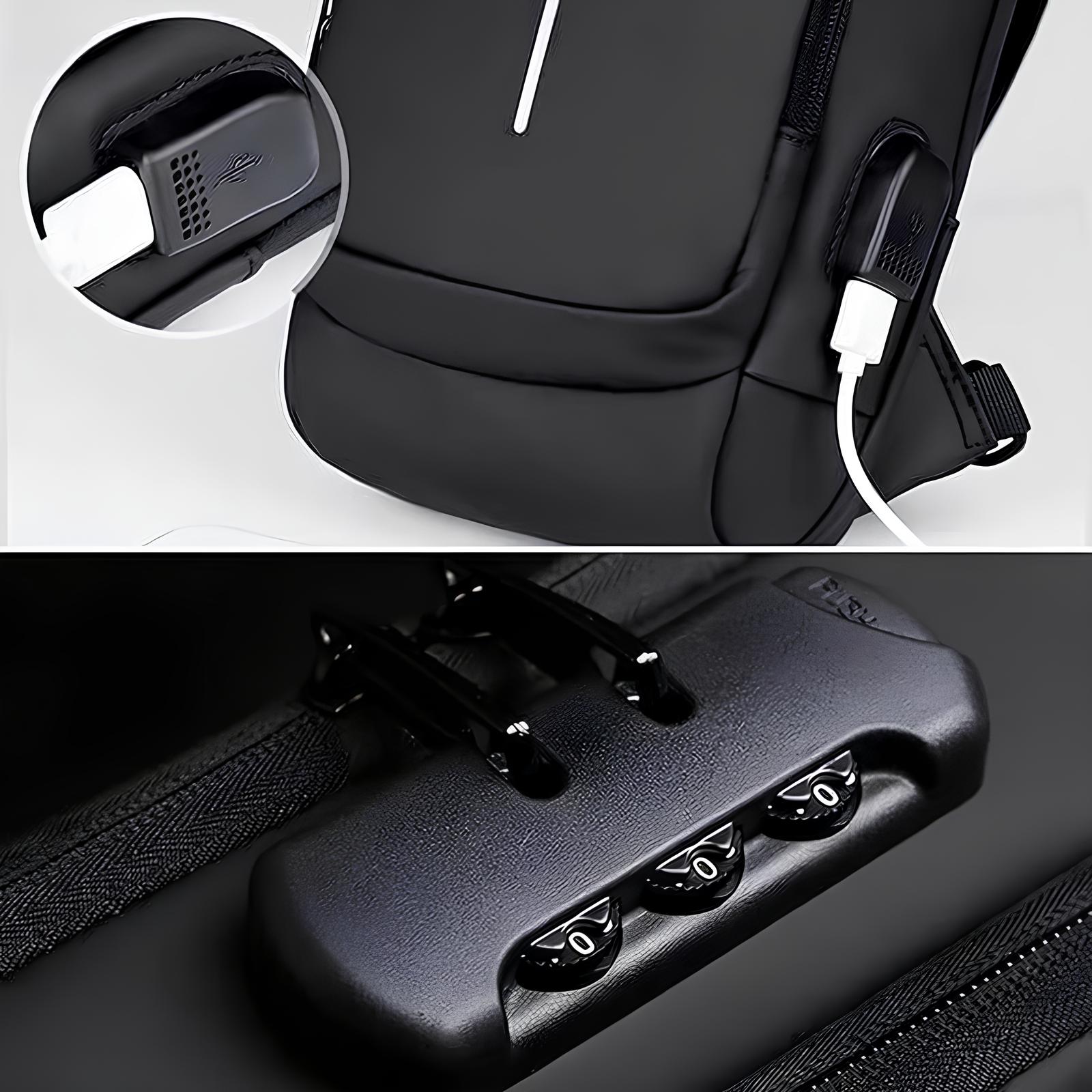 USB Charging Port: Built-in cable to connect with your power bank for on-the-go charging without opening the bag.
