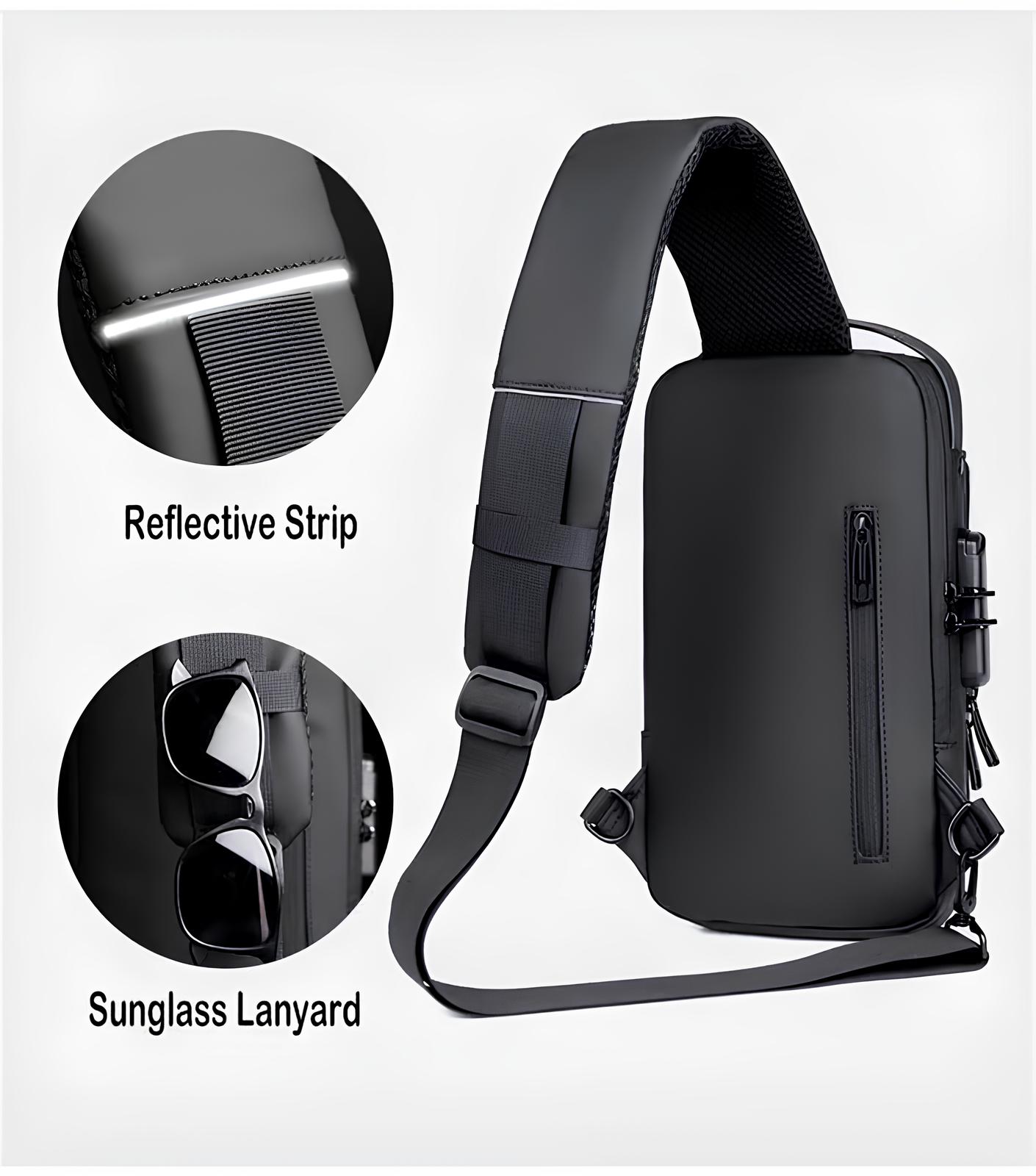 This slim, stylish unisex sling bag is perfect for travel, cycling, hiking, and daily use. It comes with a hard shell body and integrated password lock (default 0-0-0, resettable) for enhanced security. The bag includes a USB charging port to keep your devices powered on the move. Despite its compact look, it has large storage capacity to carry water bottles, umbrellas, phones, wallets, and more. A hidden back pocket keeps your most valuable items safe and easily accessible.